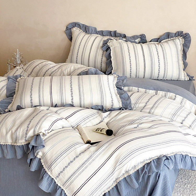 Coastal Blue Frill Stripe Bedding Set