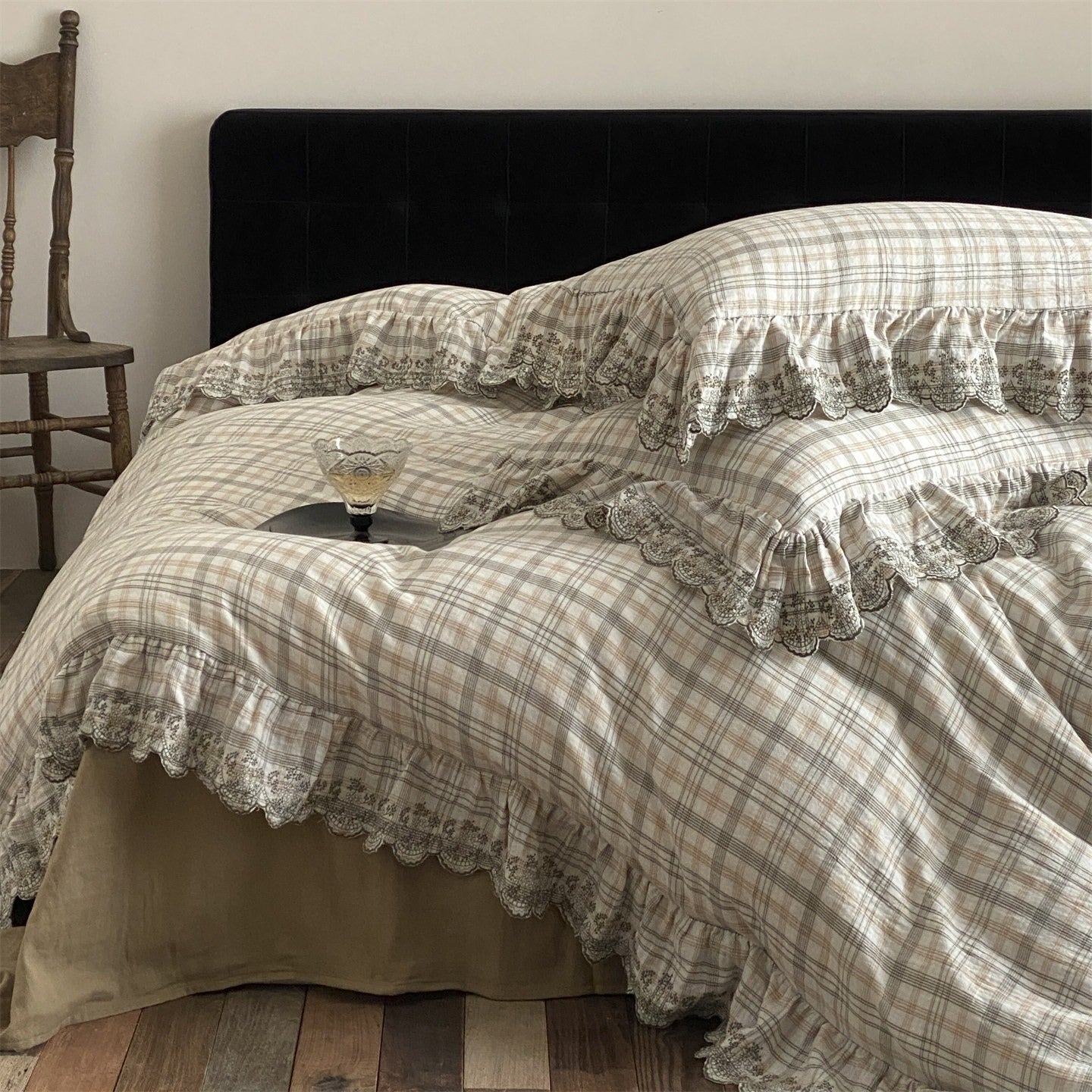 Japanese Tartan Ruffle Bedding Set