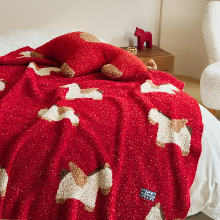 Discover the Red Pegasus Collection: a playful range featuring mythical winged horses in vibrant red. Choose between a cosy blanket adorned with multiple flying Pegasus designs or a charming Pegasus pillow. Perfect for adding a touch of magic and wonder to your space, these pieces bring legendary charm to your home. Whether you're snuggling up with the soft blanket or resting your head on the delightful pillow, let your imagination soar.