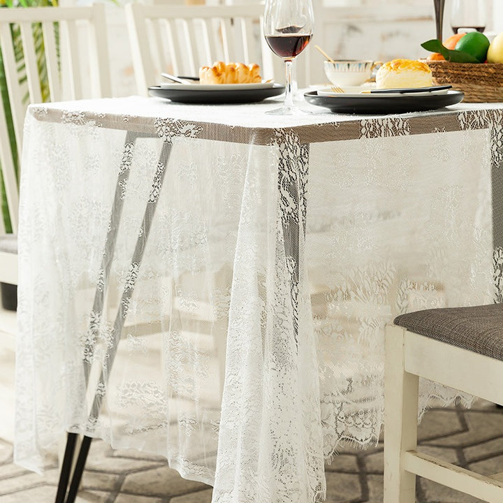 Crafted with delicate lace in a soft, cloudy white shade, this tablecloth adds a timeless sophistication to any setting. Its intricate patterns create a graceful ambiance, ideal for special occasions or everyday use.