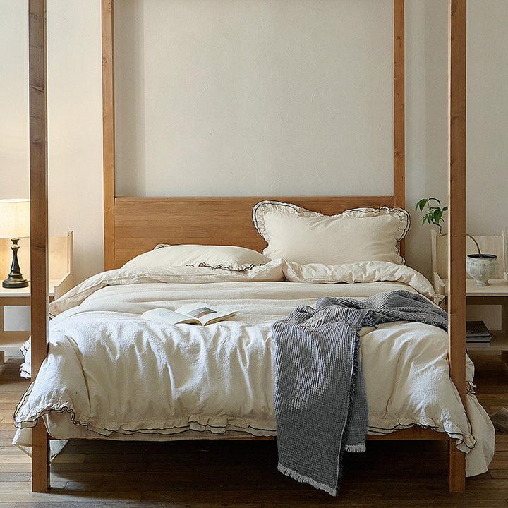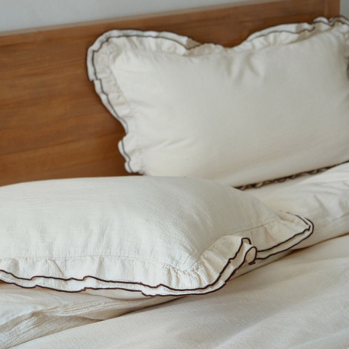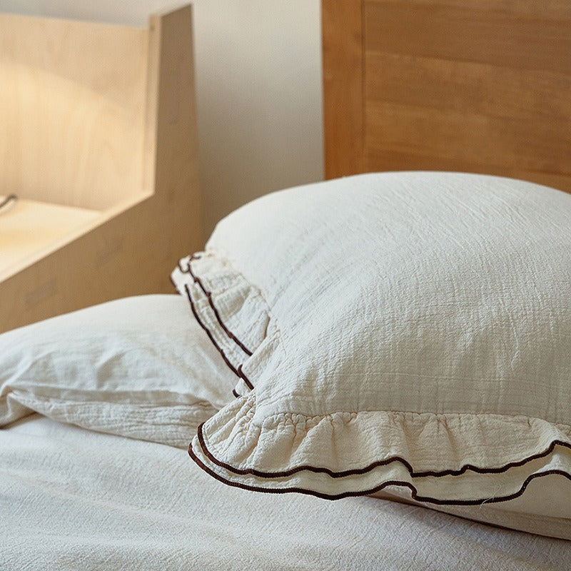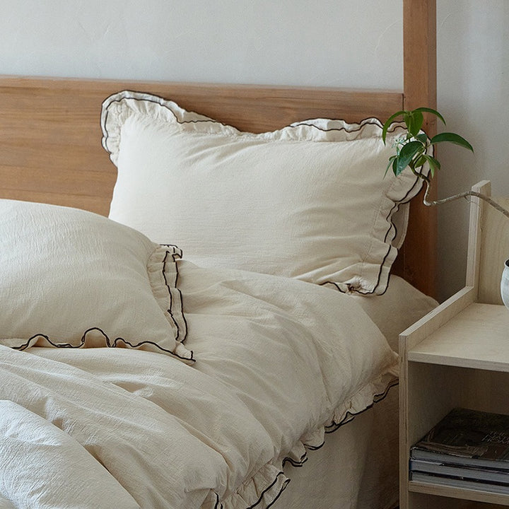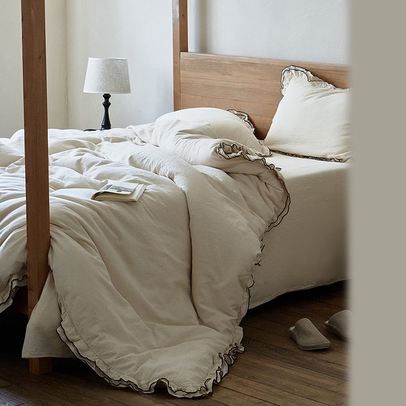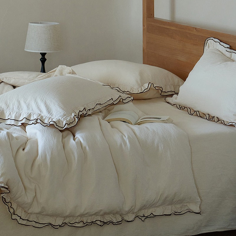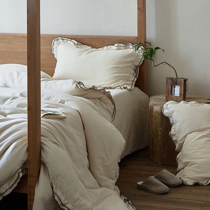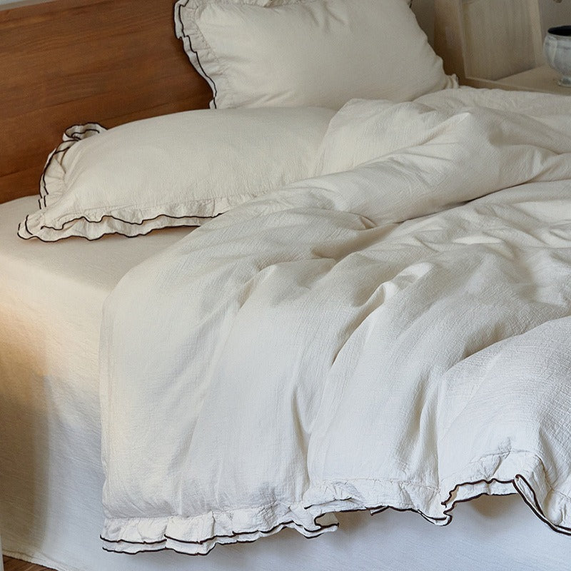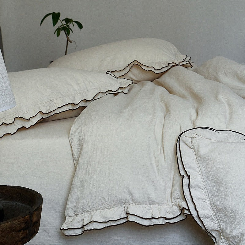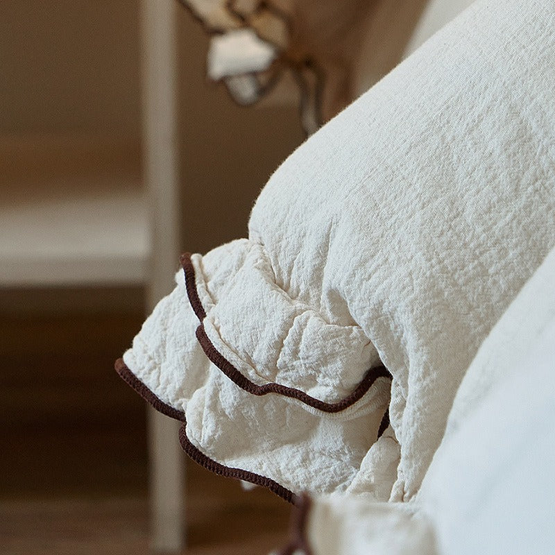 Two layers of delicate ruffles create the feeling of a warm, double embrace, adding charm and romance to your space. Soft, fluffy, and irresistibly cosy, the cotton fabric invites you to sink into comfort. Designed for restful nights and dreamy slumber, it blends elegance with everyday ease, turning your bed into a haven of layered softness and timeless style.