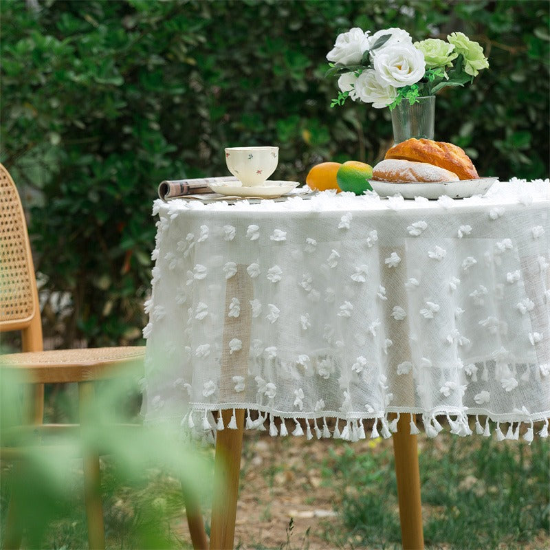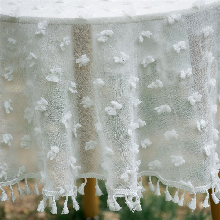 This tablecloth adds a luxurious texture that invites comfort and style. Its round shape fits perfectly on most tables, creating a cozy atmosphere for family meals or special gatherings. Easy to maintain and durable, it protects your table while enhancing your décor.