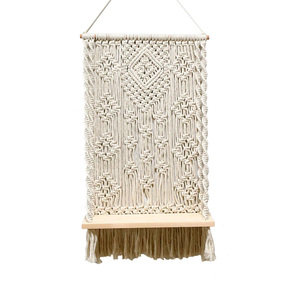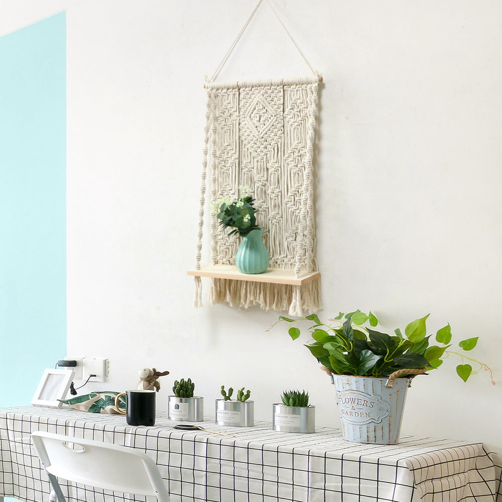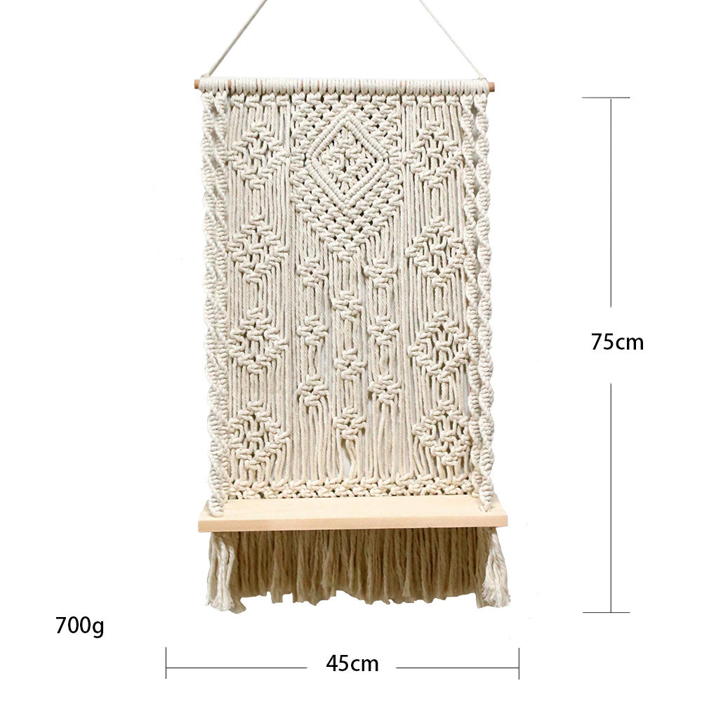 Modernize your living space with our Handwoven Shelf Macrame Wall Decor, a perfect blend of functionality and bohemian charm. Expertly crafted from 100% cotton rope and sturdy wooden planks, this shelf offers a stylish solution for displaying your favourite plants, books, and decorative items. Easy to hang and versatile, it complements various interior styles, from rustic to contemporary.