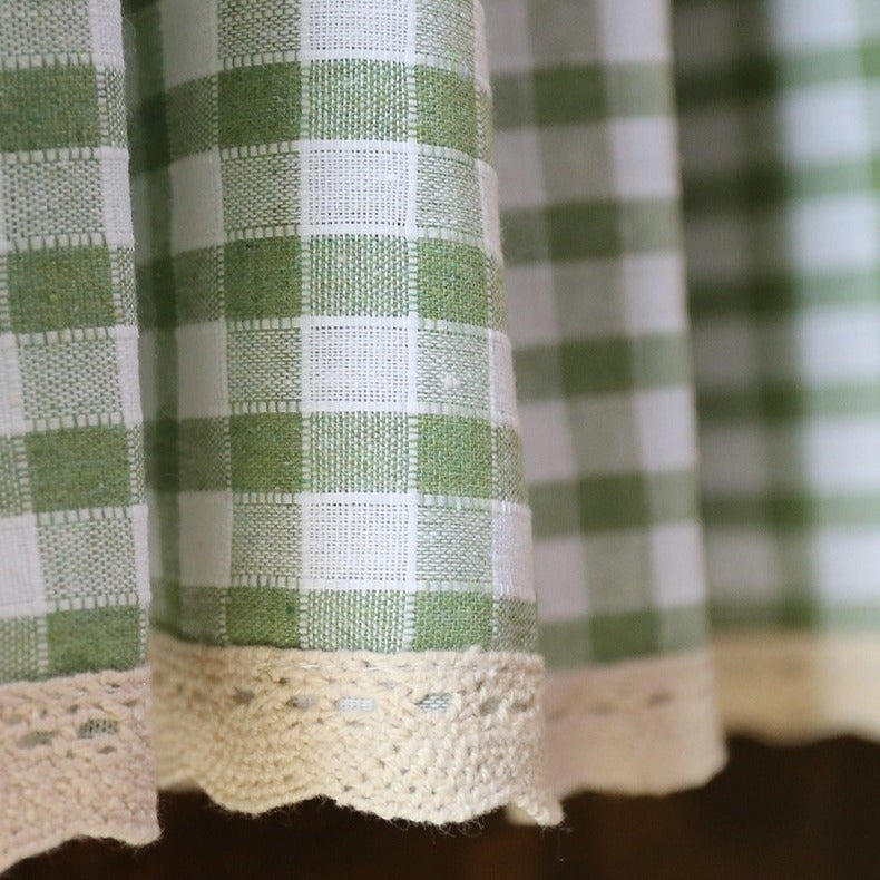 Lace & Green Check Cabinet Curtain