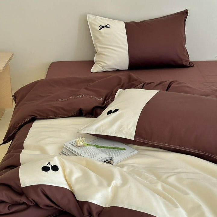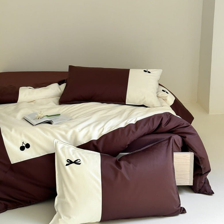 Cherry-Ribbon Print Bedding Set -- Delicors