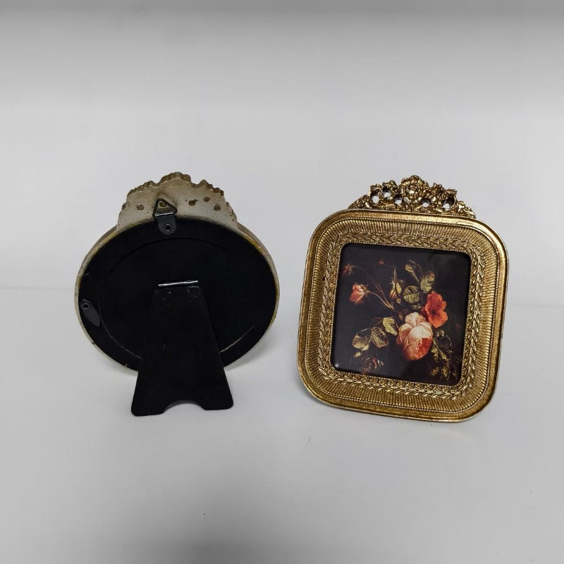 This gilded vintage frame set blends timeless elegance with a touch of old-world charm. The ornate metal detailing and classic square-and-round pair bring a romantic, antique vibe to your favourite photos or artwork. Perfect for styling a mantel, vanity, or gallery wall, it effortlessly elevates any space with warm, nostalgic luxury.