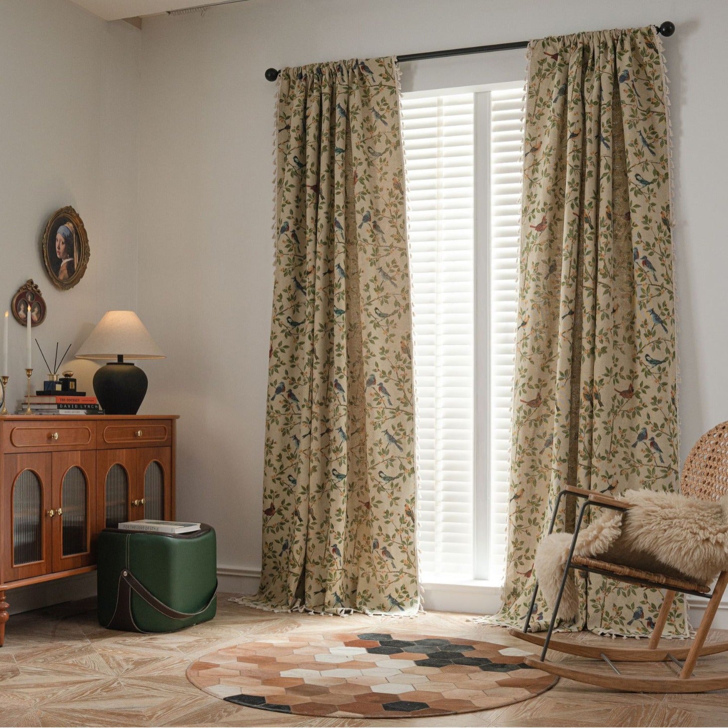 The Singing Bird Tassel Curtain adds a charming and delicate touch to any room with its intricate tassel design resembling fluttering birds. This curtain not only enhances your décor with its artistic flair but also creates a gentle, serene atmosphere by softly diffusing light.