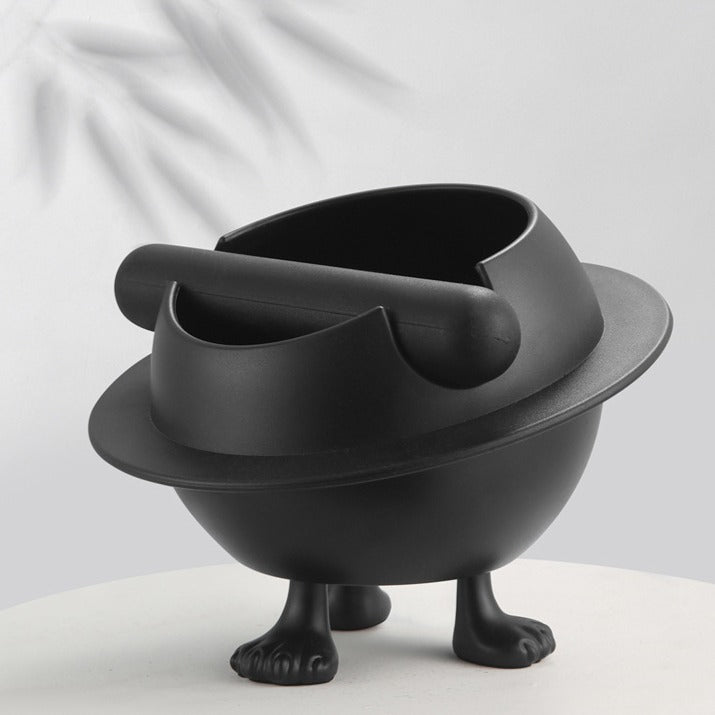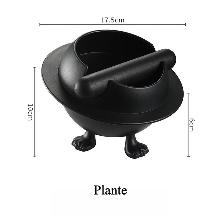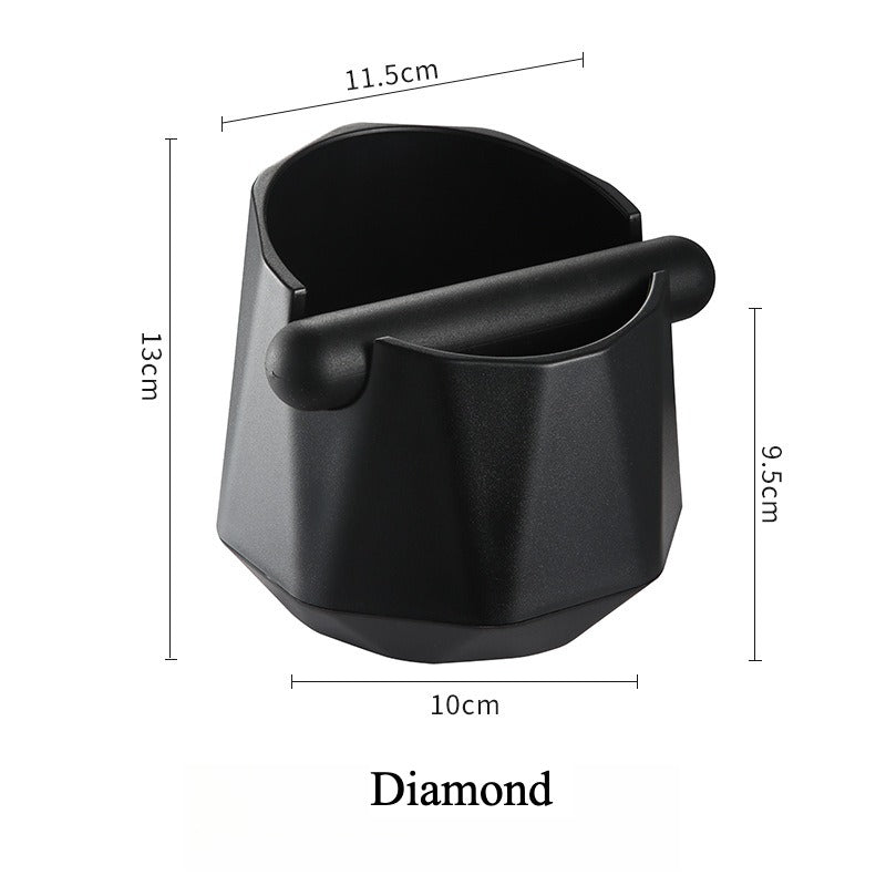 Made of durable ABS plastic in sleek black. Angled opening for easy knocking. Removable rubber bar keeps it secure. Perfect for coffee grounds or as an ashtray. Compact size fits any counter while adding a modern touch to your coffee space.