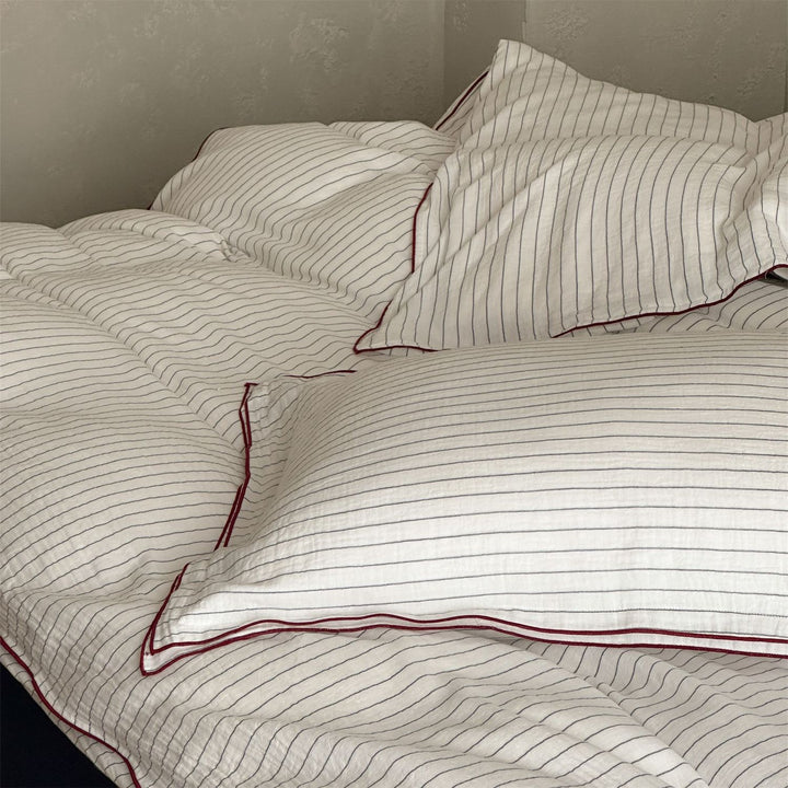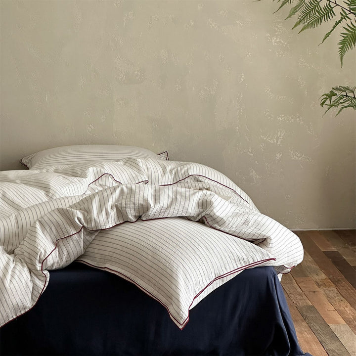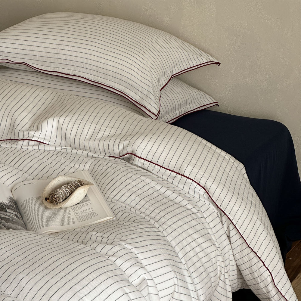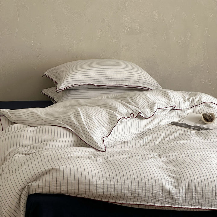 Upgrtade your bedroom with the EvoCotton Collection, designed to bring a touch of contemporary elegance to your space. Featuring sleek, thin stripe lines, this bedding set effortlessly combines style and comfort. Made from high-quality, breathable cotton, it ensures a peaceful night’s sleep.