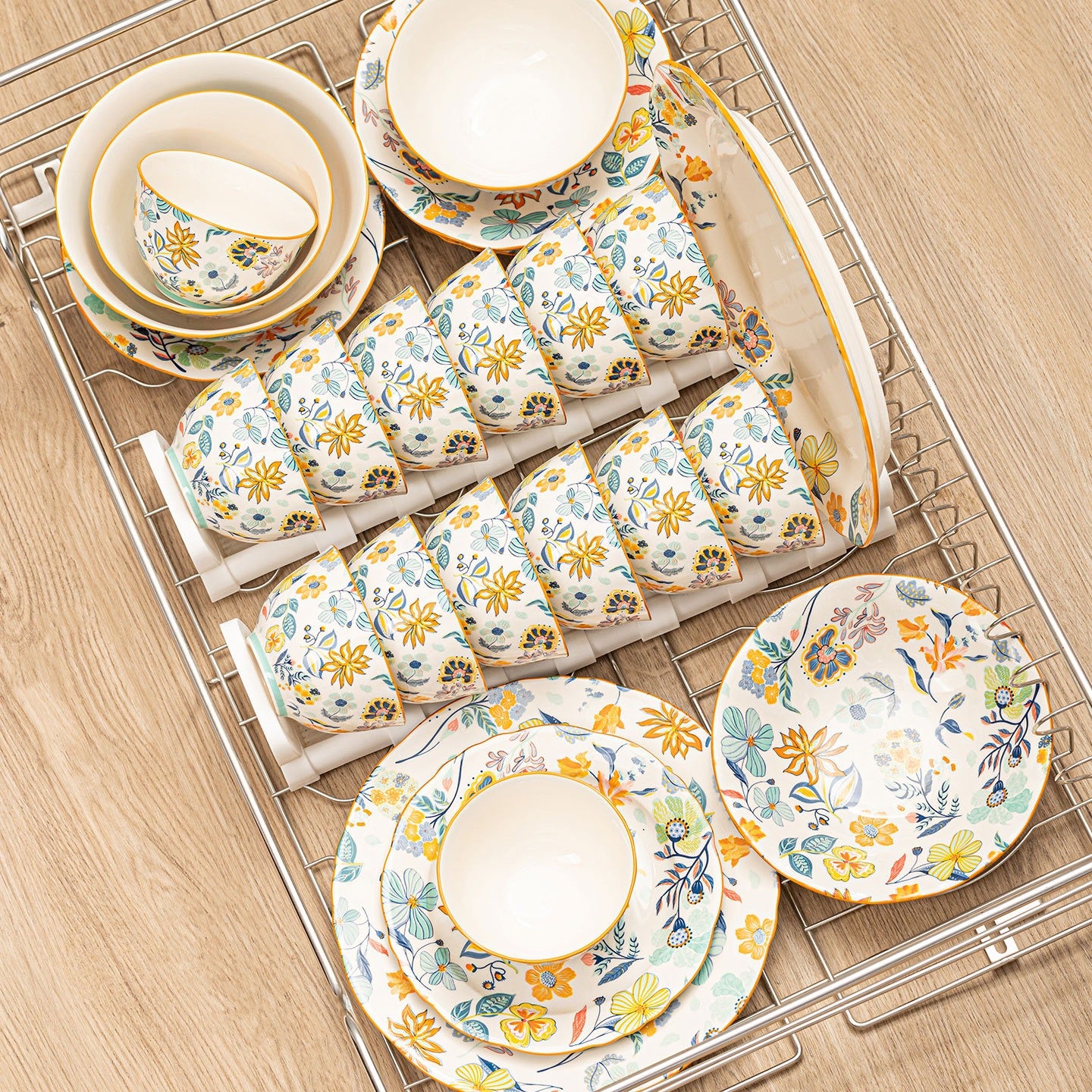 The Sunlit Garden Dinnerware Set brings warmth and charm to every meal with its vibrant floral design. Crafted for everyday use, this set combines durability and style, making it perfect for both casual family dinners and special occasions.