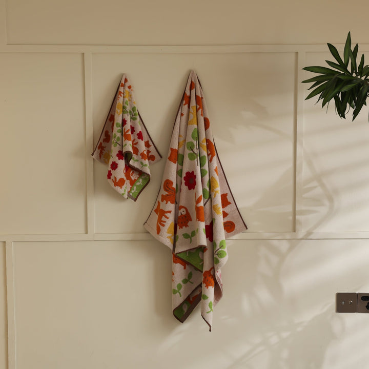 Transform your bathroom into a whimsical fairytale forest with our Fairytale Forest Towel Set. Made of soft cotton, this set features a tree, flower, rabbit, and owl design. Get ready to add a touch of enchanted charm to your daily routine.