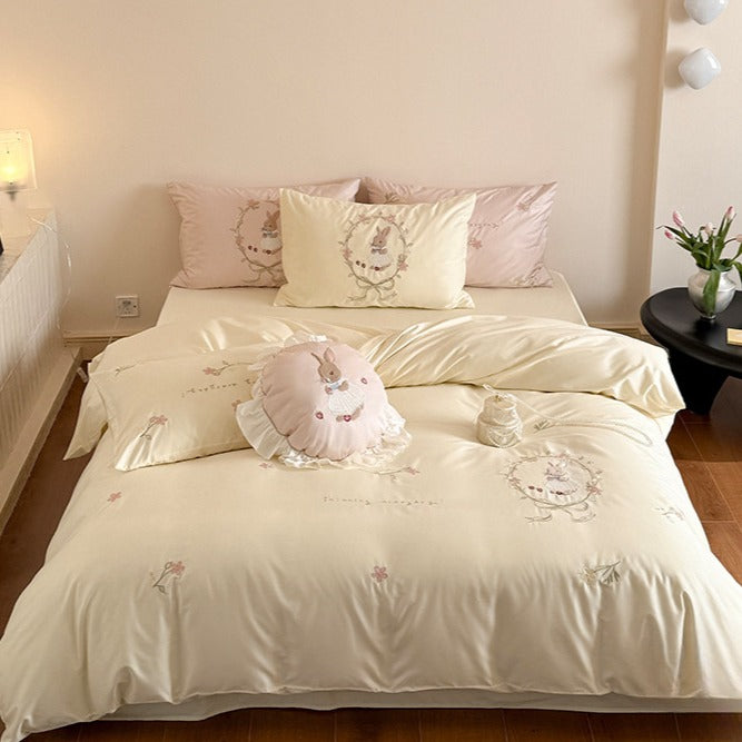 Sleep like a king in a field of flowers with the Bunny Garden Bedding Set! Surround yourself in cozy, soft fabric that will make you feel like you're sleeping in a lush garden. Wake up refreshed and rejuvenated, ready to conquer any adventure that comes your way! Our cute rabbits design will give a sweet dream, available in three colours and two sizes.