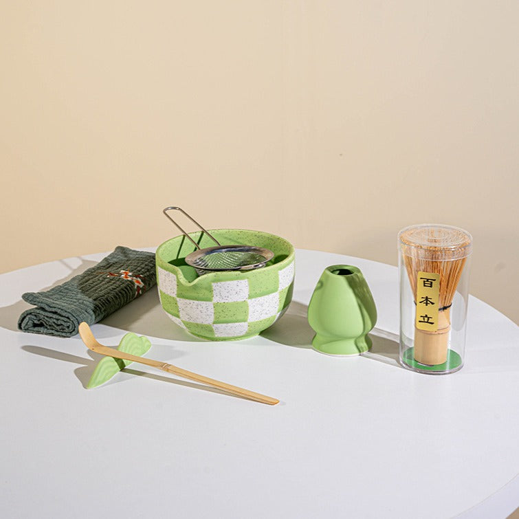 This chequered design is a fresh twist, offering a more modern and stylish vibe compared to traditional patterns. Enjoy your matcha time immediately with this 7pcs full Checker set, whether you're a seasoned matcha lover or just starting your matcha tea journey.