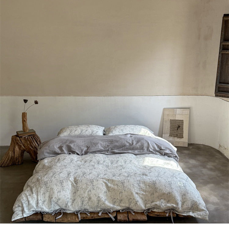 Made from 100% cotton muslin, this set brings you the kind of breathable comfort that feels natural and effortless. The airy weave encourages continuous airflow to help regulate your temperature, never too warm, never too cool. It grows softer with each wash, while its gentle crinkled texture adds a relaxed, effortless charm to your bed.