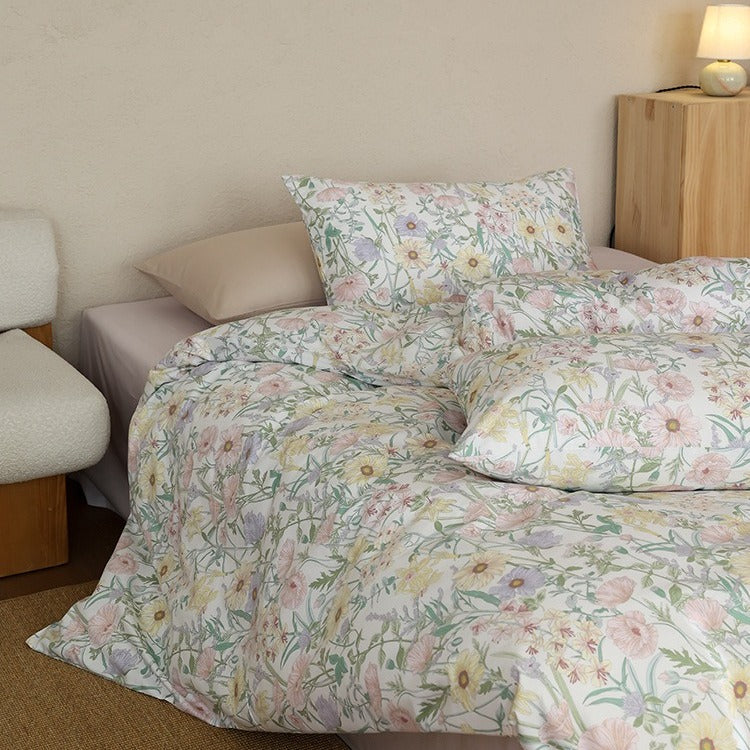 The Chrys Lover Bedding Set is perfect for anyone who adores chrysanthemums. Beautiful purple, pink, and yellow chrysanthemums bloom across the fabric, creating a cheerful and natural look. This bedding set brings the charm of these lovely flowers into your bedroom, making it feel bright and happy. The soft colours and pretty flower designs make your room feel calm and inviting.