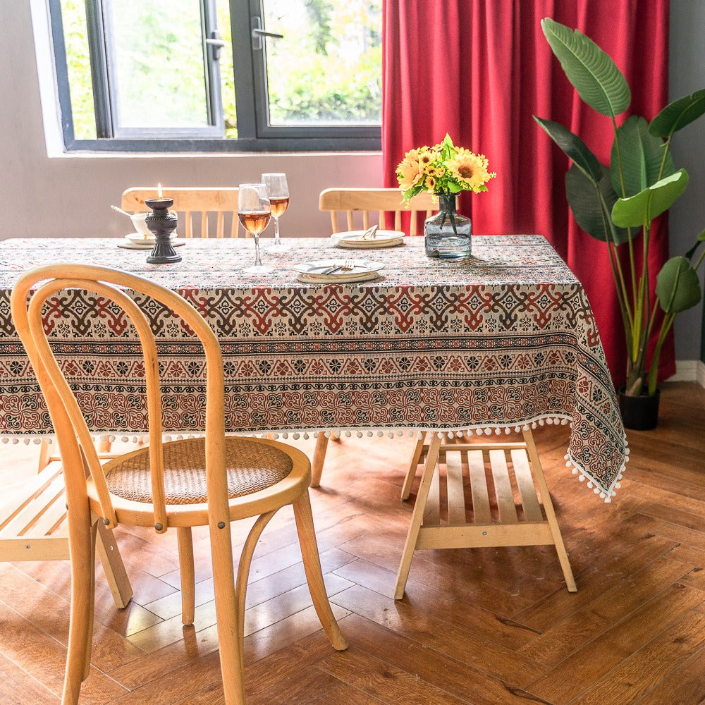 Escape the ordinary and live life on the edge with the Boho Vibe Table Cloth! Step out of your comfort zone and embrace the bold, vibrant design that will make any meal feel like an exotic adventure! Show off your adventurous spirit and make a statement with this unique tablecloth. Perfect for both indoor and outdoor gatherings, you'll bring a sense of daring to any occasion. Live boldly with the Boho Vibe Table Cloth!