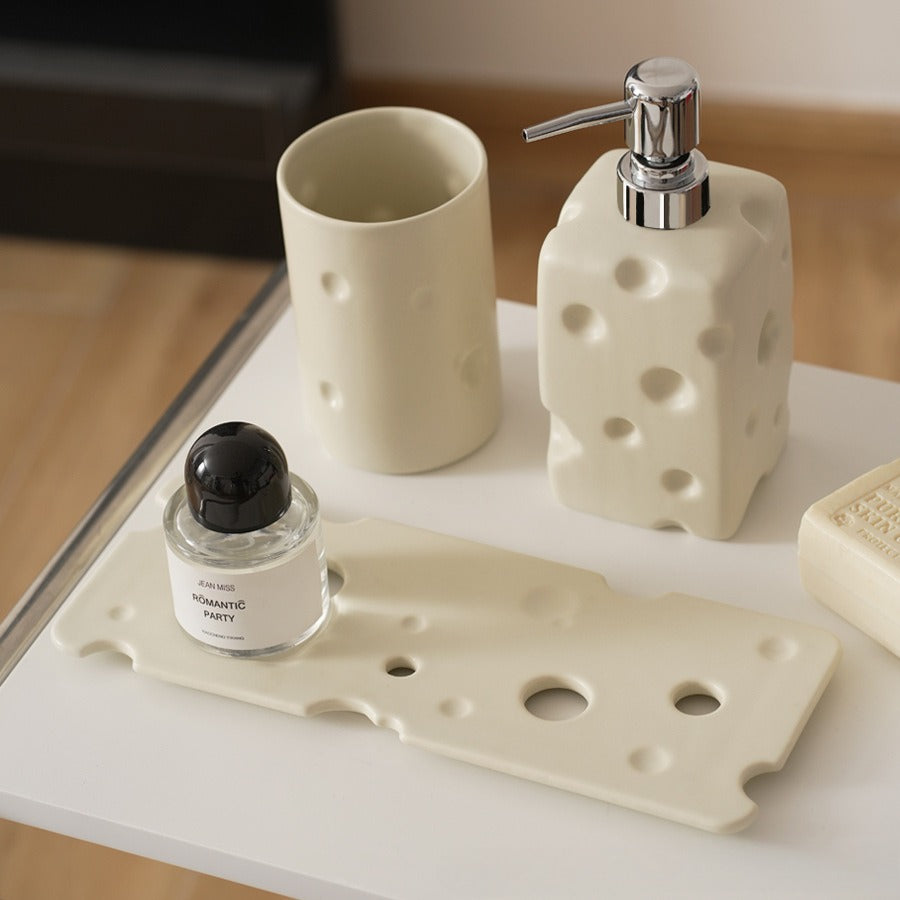 This swiss cheese tray is a charming and practical addition to your home. Shaped like a slice of cheese with characteristic holes, it's perfect for holding soaps, jewelry, or small trinkets. The high - quality ceramic material ensures durability and easy cleaning, adding a touch of whimsy to any space.