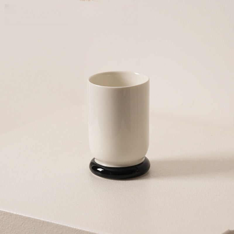These ceramic toothbrush cups, with a sleek white body and contrasting black base, offer a modern and minimalist storage solution. Perfect for organizing toothbrushes, they add a touch of elegance to your bathroom countertop. Durable and easy to clean, they blend functionality with stylish design.