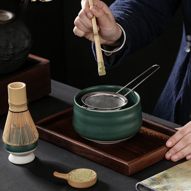 Koicha (濃茶) is matcha in its boldest form—thick, syrupy, and made with more powder and less water. The consistency is closer to melted chocolate than tea. This dark green is refer to Koicha, Whisking matcha with this set feels like stirring nature’s hush, blending earthy calm with ritual grace, and one packs all matcha ritual essentials. No need to hunt pieces separately.