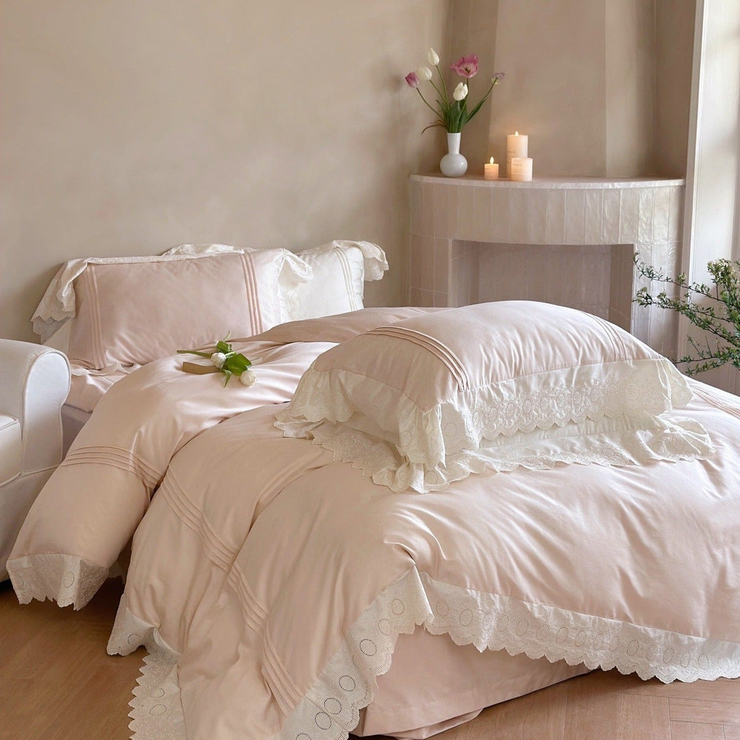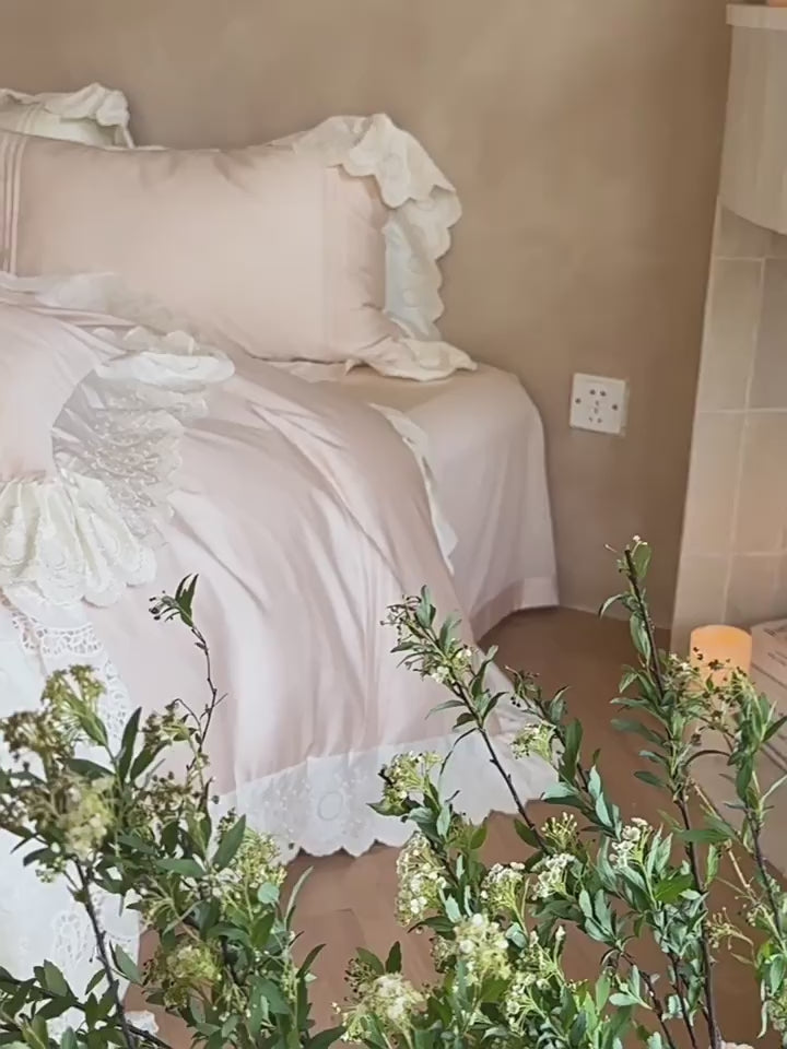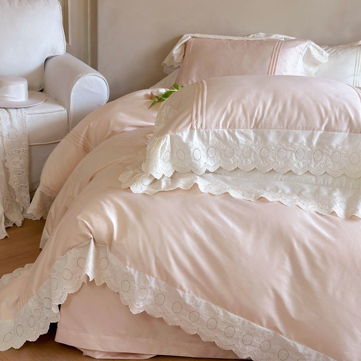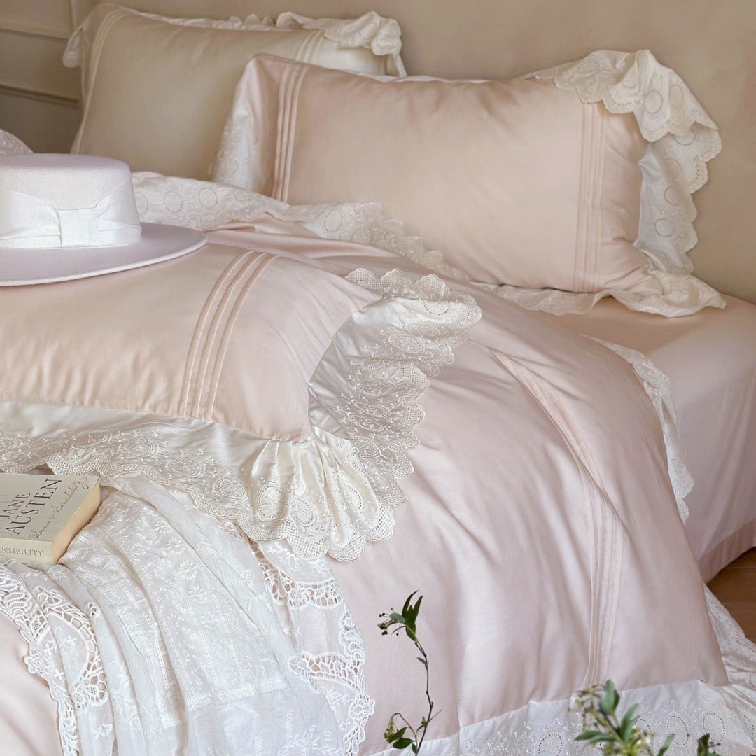 Indulge in the timeless allure of Parisian elegance with our Parisian Lace Blush Bedding Set. Delicately embroidered roses on a soft pink canvas infuse your bedroom with whimsical charm and vintage appeal. This luxurious ensemble ensures every night feels like a dreamy escape. Elevate your sleep sanctuary with the perfect blend of craftsmanship and sophistication, and let the enchanting beauty of our bedding set transform your bedroom into a haven of romantic allure.