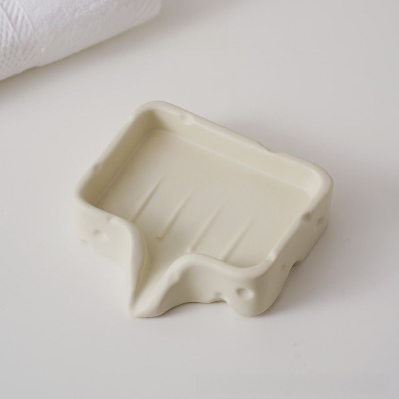 This ceramic cheese - shaped soap dish mimics cheese appearance, with cute holes and unique outline. It can drain water, being practical and decorative, suitable for minimalist or fun - style bathroom and home scenes.