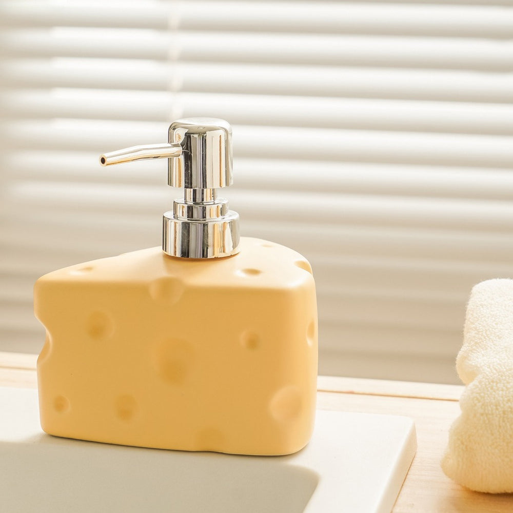 This lotion dispenser is designed in a fun triangular cheese shape, complete with a bright yellow finish and classic hole details for a realistic look. Perfect for adding a playful, gourmet-inspired accent to your bathroom or kitchen, it blends charming design with everyday functionality, making it ideal for dispensing lotion or soap.
