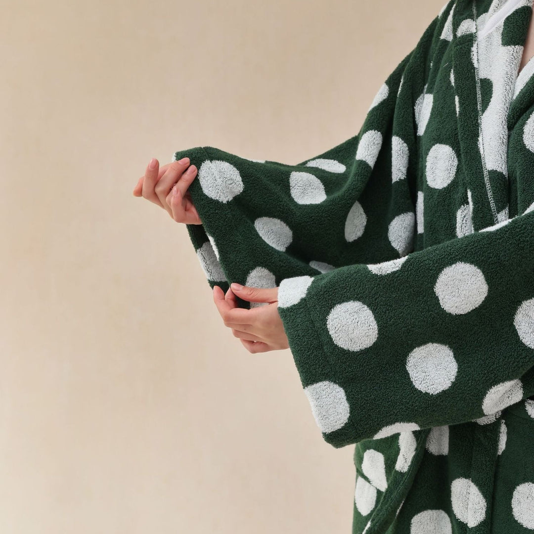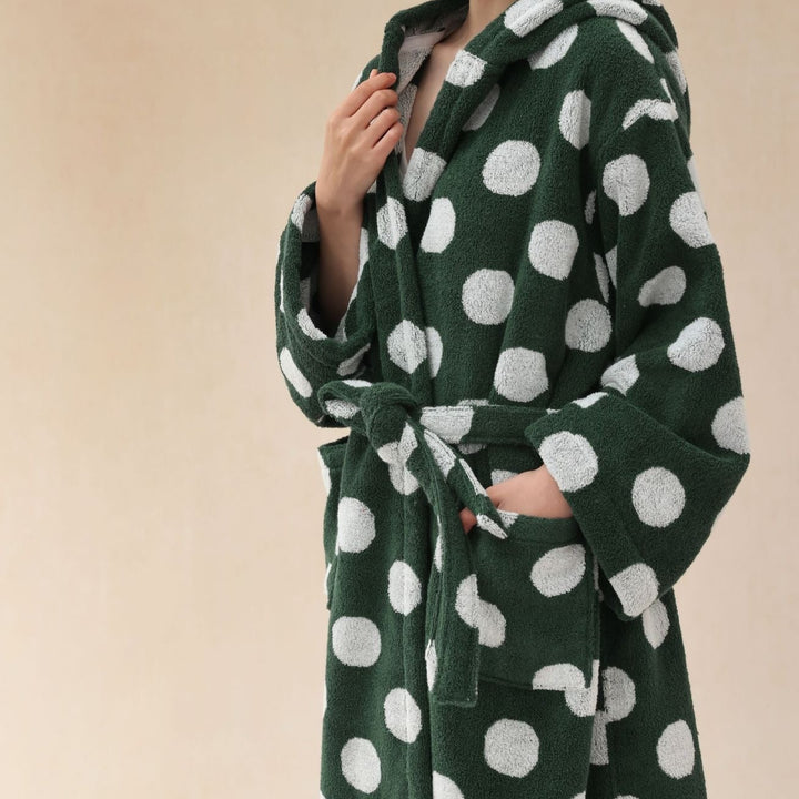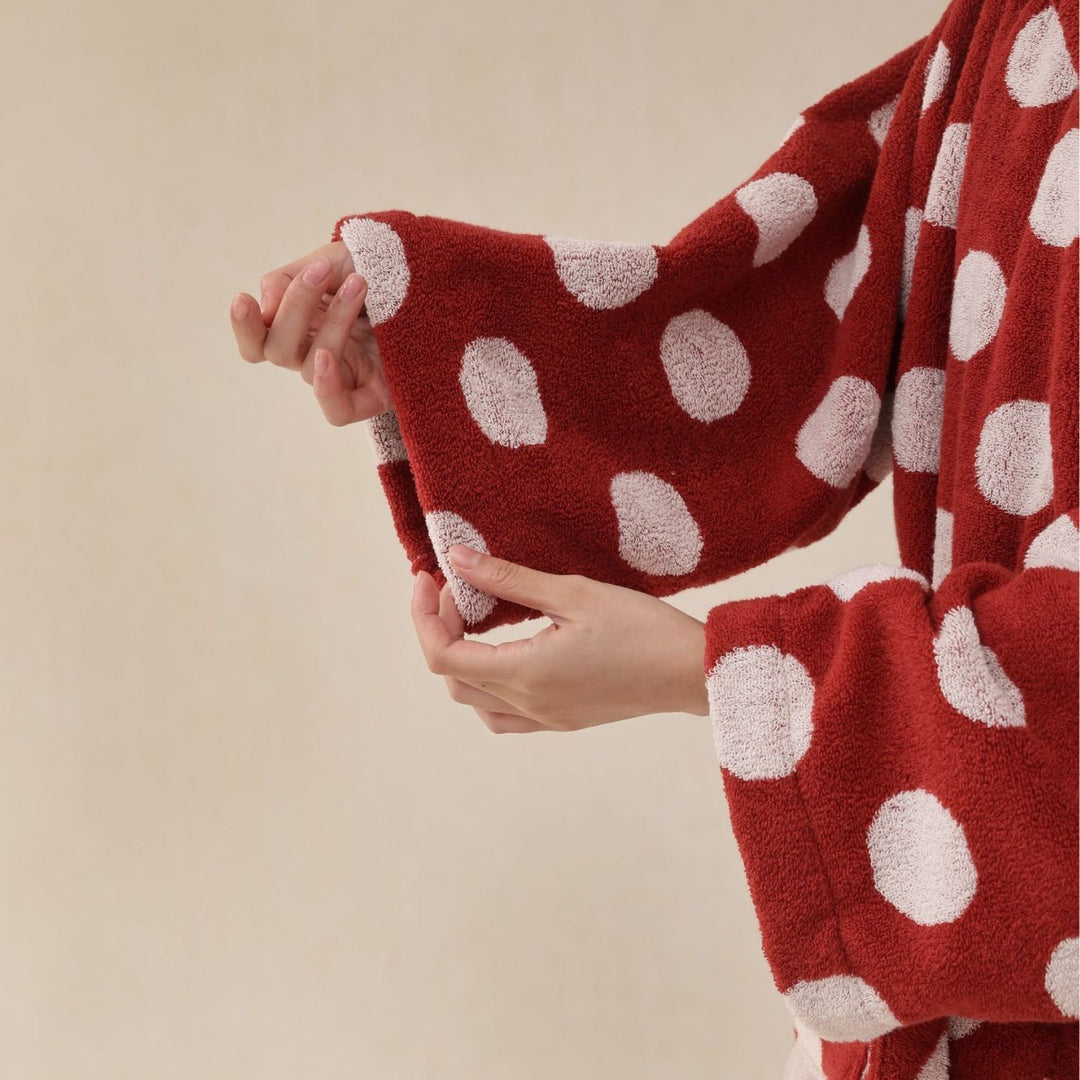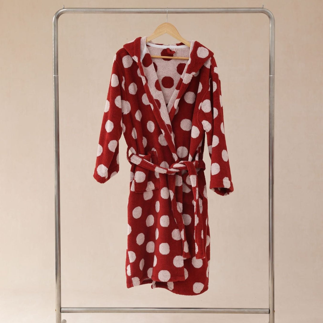 Cozy up in style with our Vintage Polka Dots Bathrobe Unisex Collection, crafted from soft, cozy cotton. Available in both red and green, this robe features large white dots that resemble playful bubbles. It’s super snug, comfy, and comes with a handy pocket, making it perfect for lounging or after a bath!