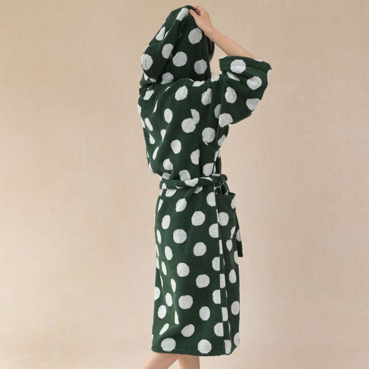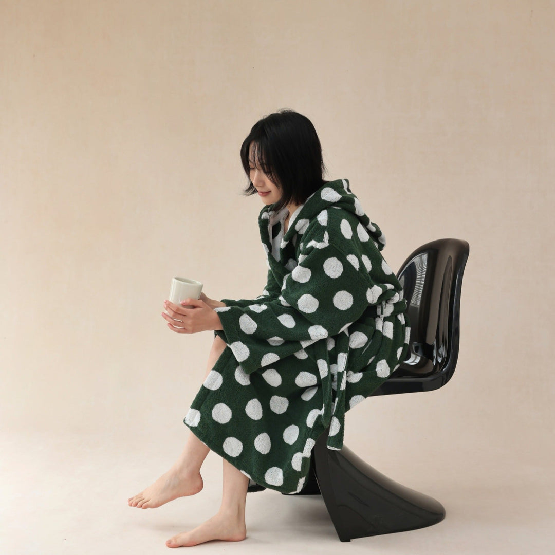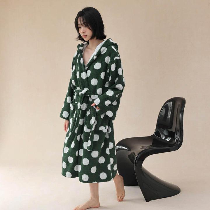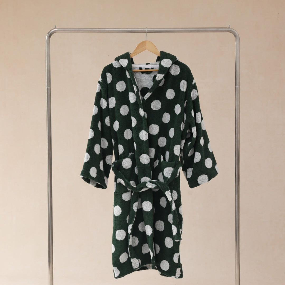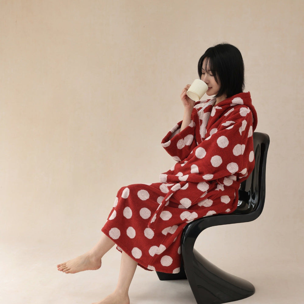 Cozy up in style with our Vintage Polka Dots Bathrobe Unisex Collection, crafted from soft, cozy cotton. Available in both red and green, this robe features large white dots that resemble playful bubbles. It’s super snug, comfy, and comes with a handy pocket, making it perfect for lounging or after a bath!