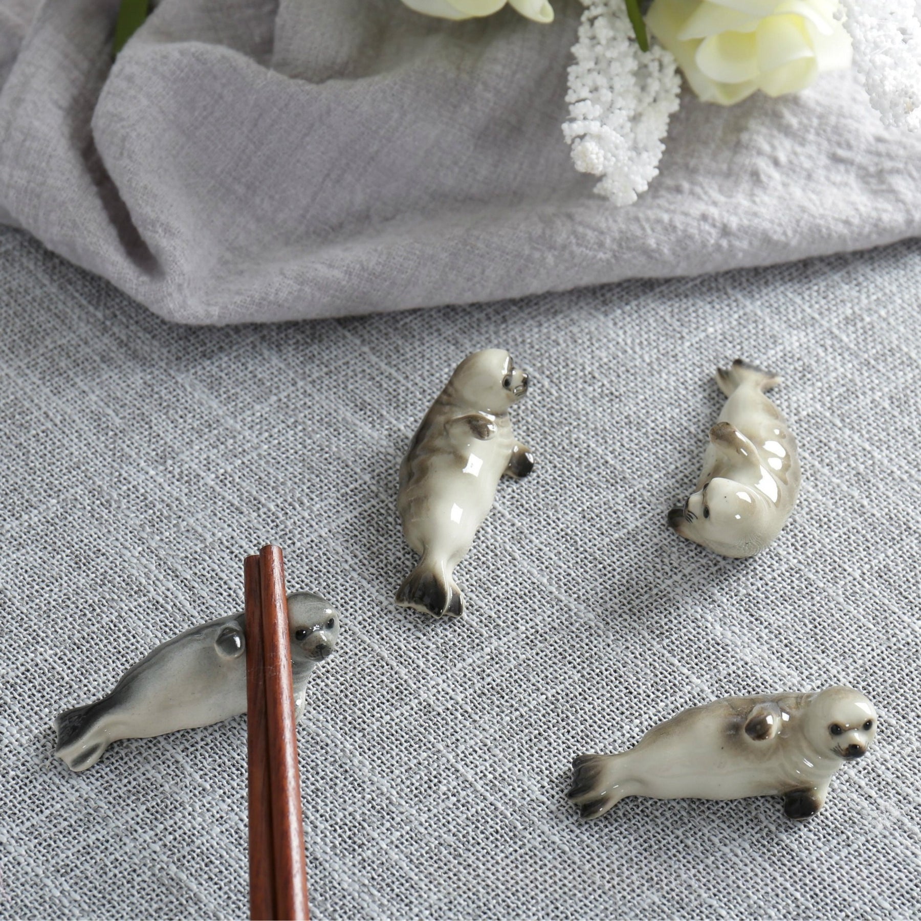 These Seal Chopstick Holder Sets feature lifelike seal designs with delicate detailing, crafted from smooth ceramic. They neatly hold chopsticks to keep your table tidy while adding a whimsical, marine themed charm to meals. Perfect for ocean lovers or anyone who enjoys cute tableware, these seals bring a touch of playful elegance to every dining moment