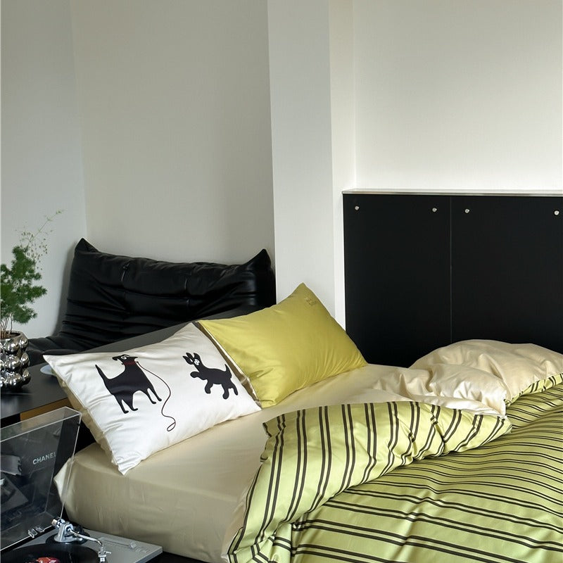 Challenge yourself to live boldly with the Puppy Green Striped Bedding Set! Transform your room into a playful oasis with its vibrant colors and eye-catching stripes. Let your adventurous spirit shine through as you snuggle up in the cozy comfort of this bedding set. Take a risk and add a touch of fun and excitement to your bedroom.