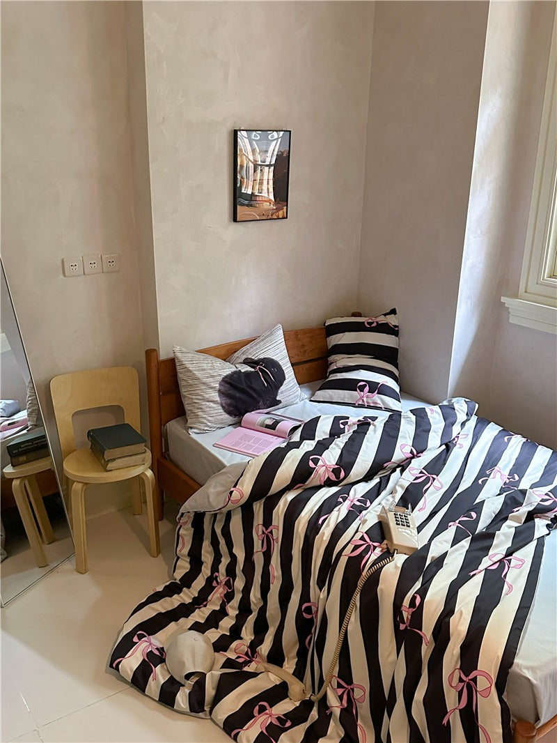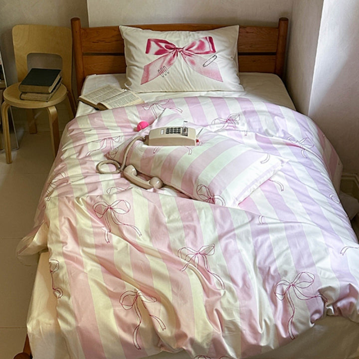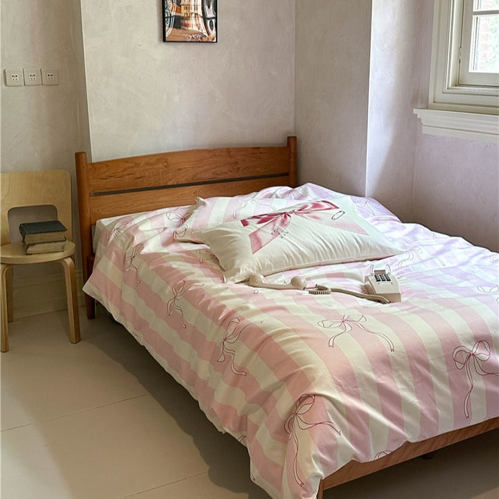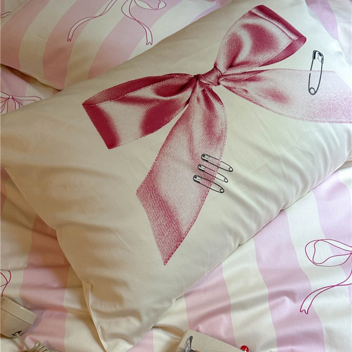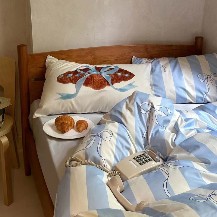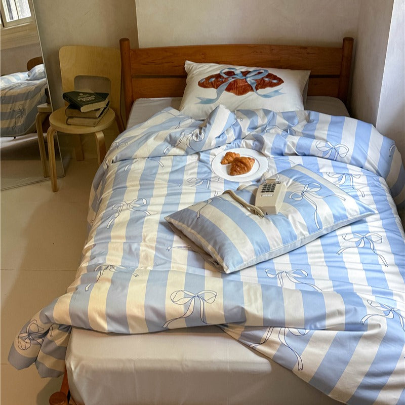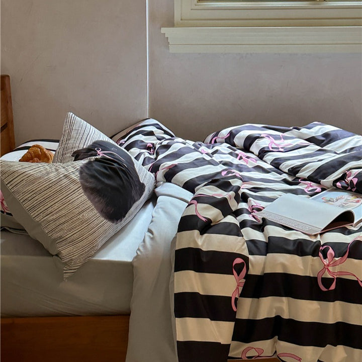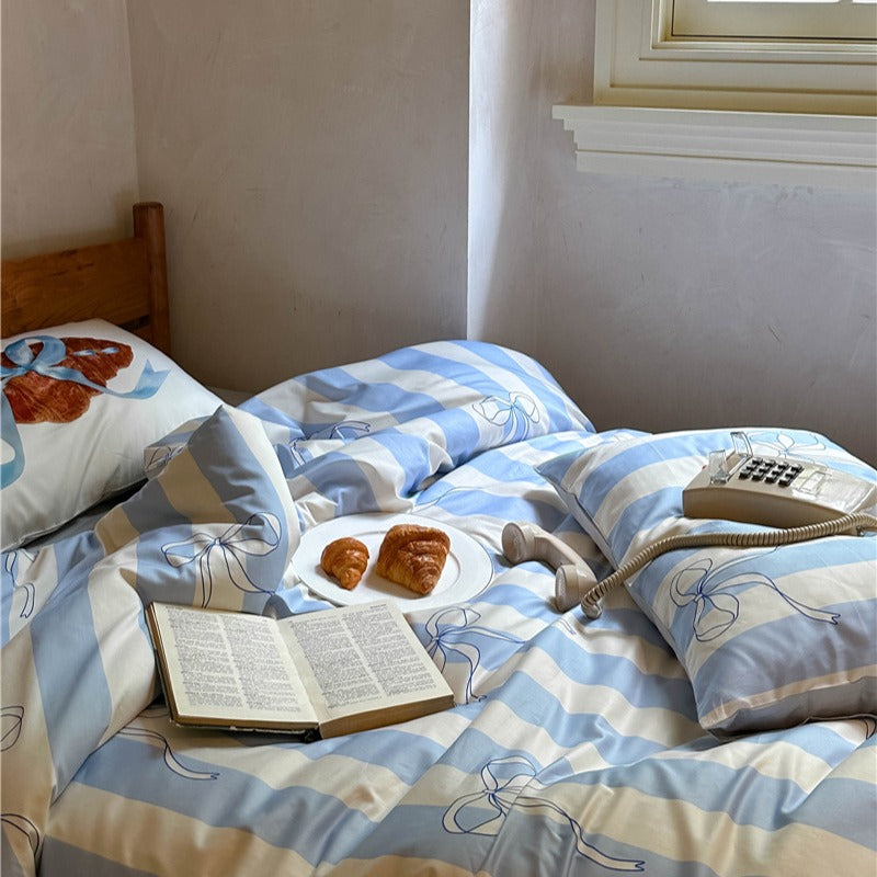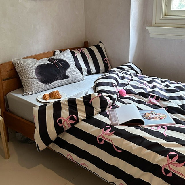 Add a sprinkle of sweetness to your space with our Lace & Bow Stripe Set. Featuring classic stripes paired with charming lace bow pillow accents, this bedding brings a fresh, clean look with a playful twist. Made from 100% long-staple cotton, it offers a soft, breathable feel that’s perfect for snuggling up in style. Available in three calming colours – blue, pink, and black – to suit any bedroom vibe.