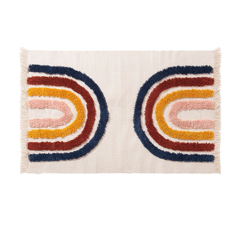 Let your floor sparkle with a pop of colour! This Rainbow Tufted Rug is the perfect way to inject some cheer into your home. Made with soft polyester for the coziest of feels, it's available in two sizes to keep your toes toasty wherever you go. Time to get your rainbow groove on!