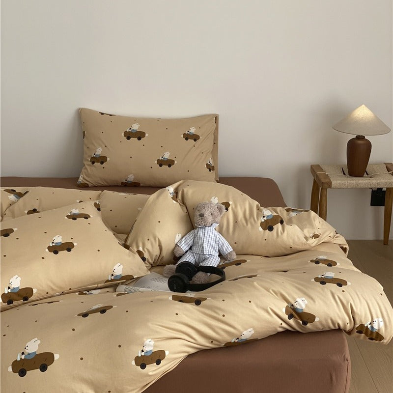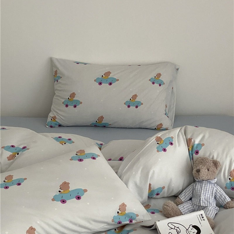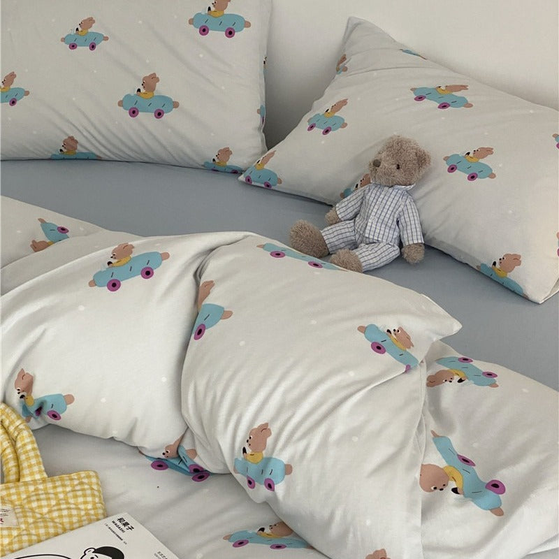 The Floor It Bear Bedding Set features a delightful puppy driving pattern that adds a playful and energetic touch to any bedroom. Perfect for children or anyone who loves a fun, whimsical theme, it creates a cosy and welcoming space.