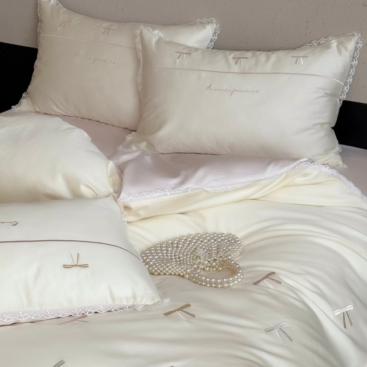 The Girl Crush Bedding Set combines delicate embroidery and cute lace trim to create a charming and inviting bedroom look. Featuring an elegant embroidered bow detail, this set adds a touch of feminine grace while maintaining a cosy, comfortable feel. Perfect for those who appreciate subtle, thoughtful details, this bedding set turns your personal space into a stylish retreat that encourages relaxation and confidence.