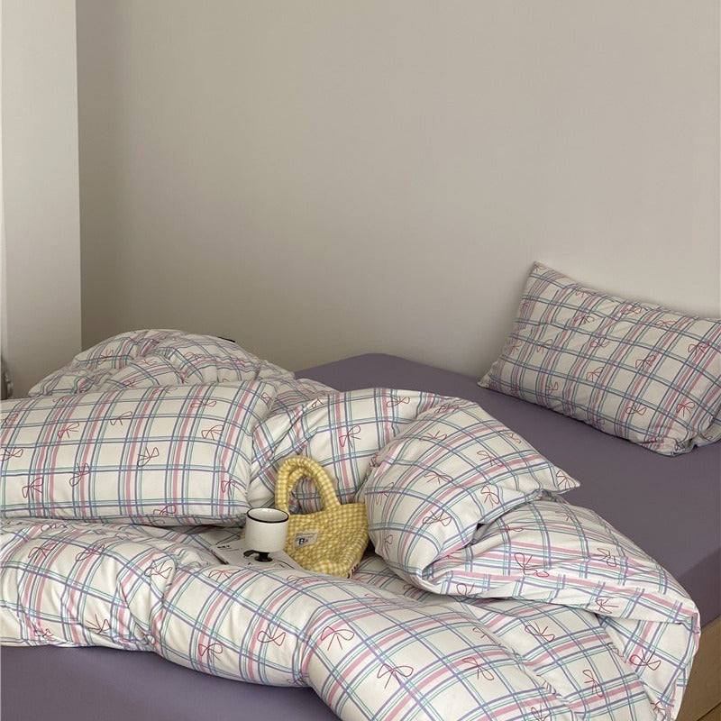The Line Dream Bedding Set features a charming purple tartan design complemented by delicate pink bow patterns, creating a cosy and inviting atmosphere in your bedroom. Made from soft, breathable materials, this set promises comfort throughout the night while adding a touch of stylish warmth to your space.