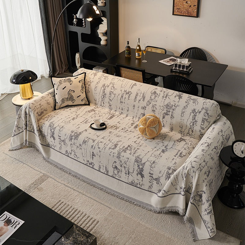 Boasts an ethereal grey design with a subtle, almost watercolour texture, like a piece of abstract art tailored for your sofa. The fabric’s soft drape and sturdy build offer both protection and comfort, while the muted, floating like grey tones bring a calming, elevated vibe to minimalist or contemporary living areas.