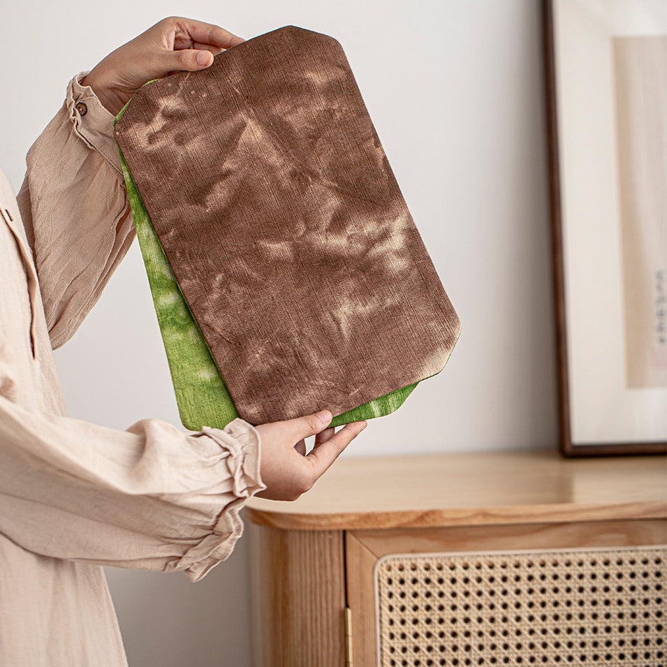 This Green Mood Placemat Set offers practical elegance with its dual-sided design. One side features a warm brown tone, while the other presents a calming green, allowing you to easily switch styles to suit your mood or table setting.