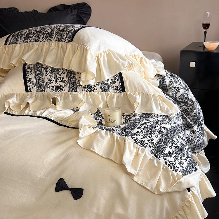 Unleash your inner king or queen in our Nostalgic Baroque Bedding Set! The intricate Baroque patterns and charming ruffles add luxury to any room, making it an ideal option for those who love classic designs. Get ready for a cozy night's sleep in this regal bedding set.