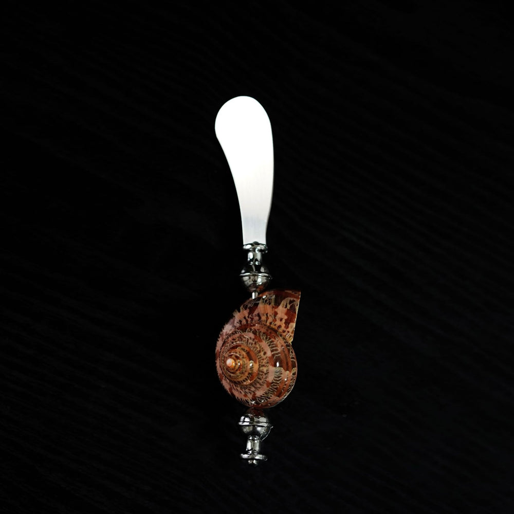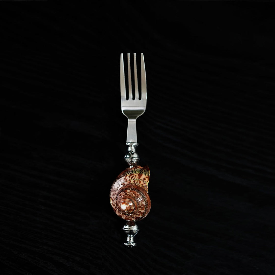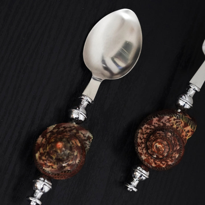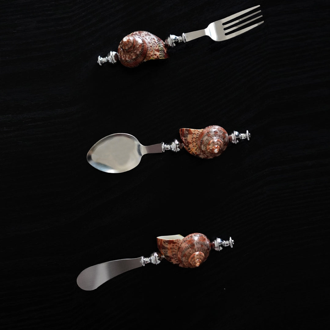 These patterned conch tableware pieces are a unique blend of nature and craftsmanship. The intricate patterns on the conch shells paired with sleek metal utensils create a striking visual contrast. They add a touch of oceanic charm to your dining setup, making every meal feel special.